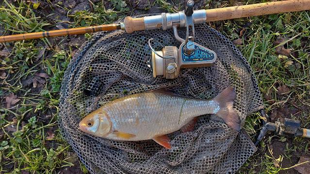For its second foray I took it to the Ashby canal where it turned out to be every bit as ideal as I had intended it to be for lobbing a 25gm cage feeder three quarters of the way across with breadflake on the hook. I had a couple of little rattles and two beautifully slow pulls round that resulted in a pound and a quarter Bream and a lovely Roach a couple of scales shy of the pound. I set the tip with barely a half inch of tension on it, just enough to show a dropback bite. It handled them every bit as beautifully as one might expect a float rod to do.